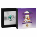 Collectionnez cette surprenante pièce de 2 onces en Argent partiellement colorisée, qui n’est pas sans rappeler l’incident d’OVNI de Roswell en 1947, qui impliquait un mystérieux crash d’objet au Nouveau-Mexique. L’avers, conçu comme un vaisseau spatial, donne à cette pièce précieuse un aspect mystérieux. 1 000 exemplaires seulement dans le monde ! À ne pas manquer.