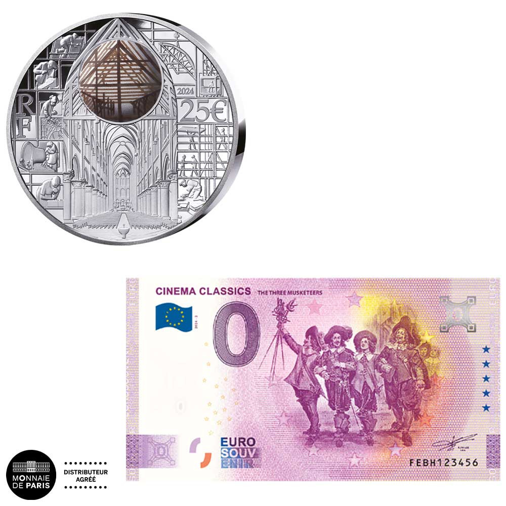 25 Euro Argent France BE 2024 - Notre-Dame de Paris + billet souvenir 0 Euro les 3 mousquetaires