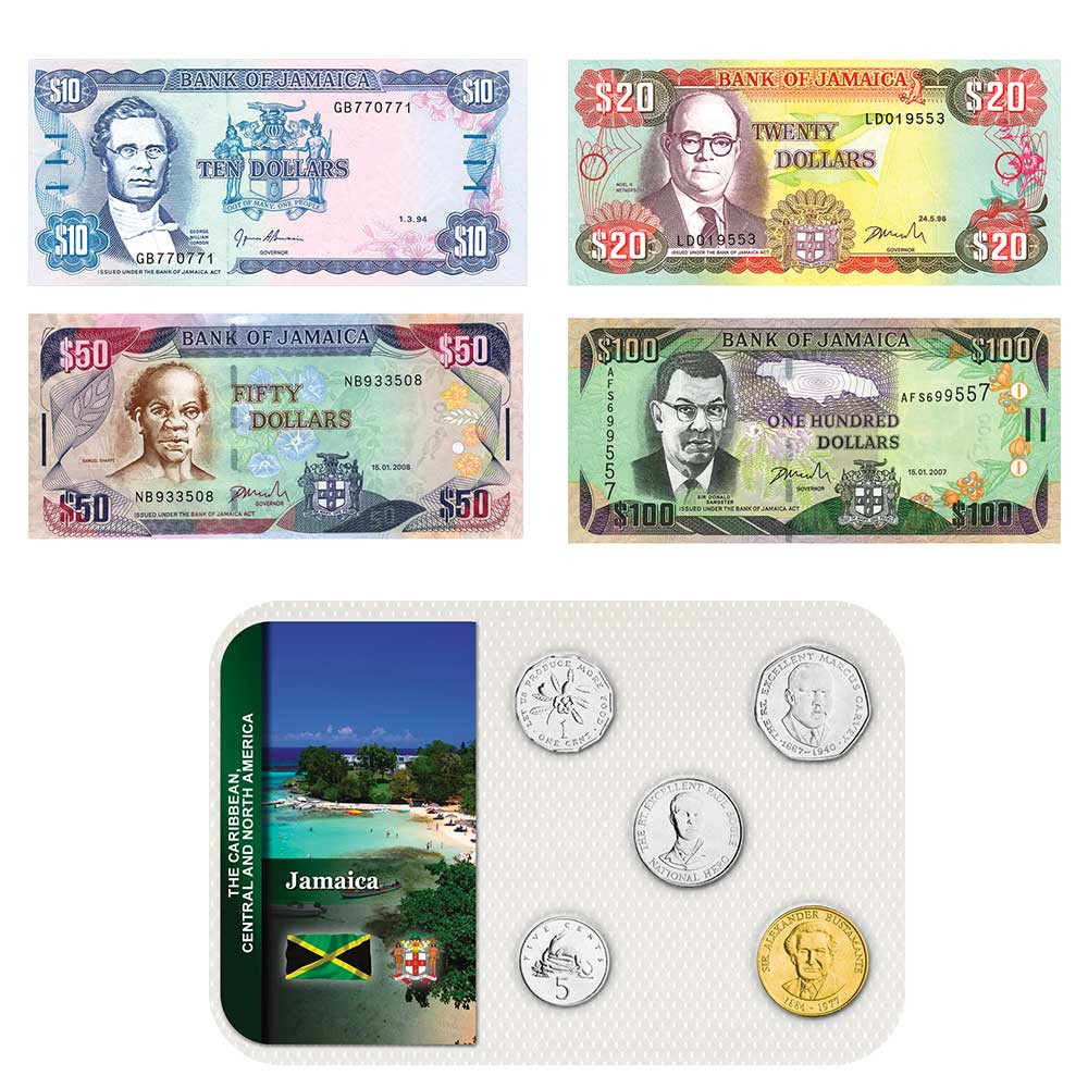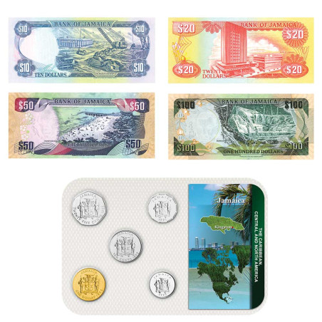 - 4 billets Jamaïque de 10, 20, 50 et 100 Dollars