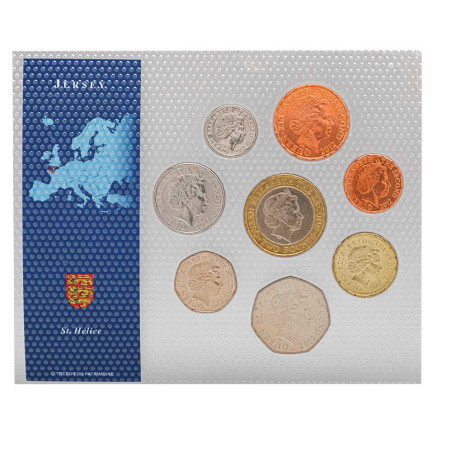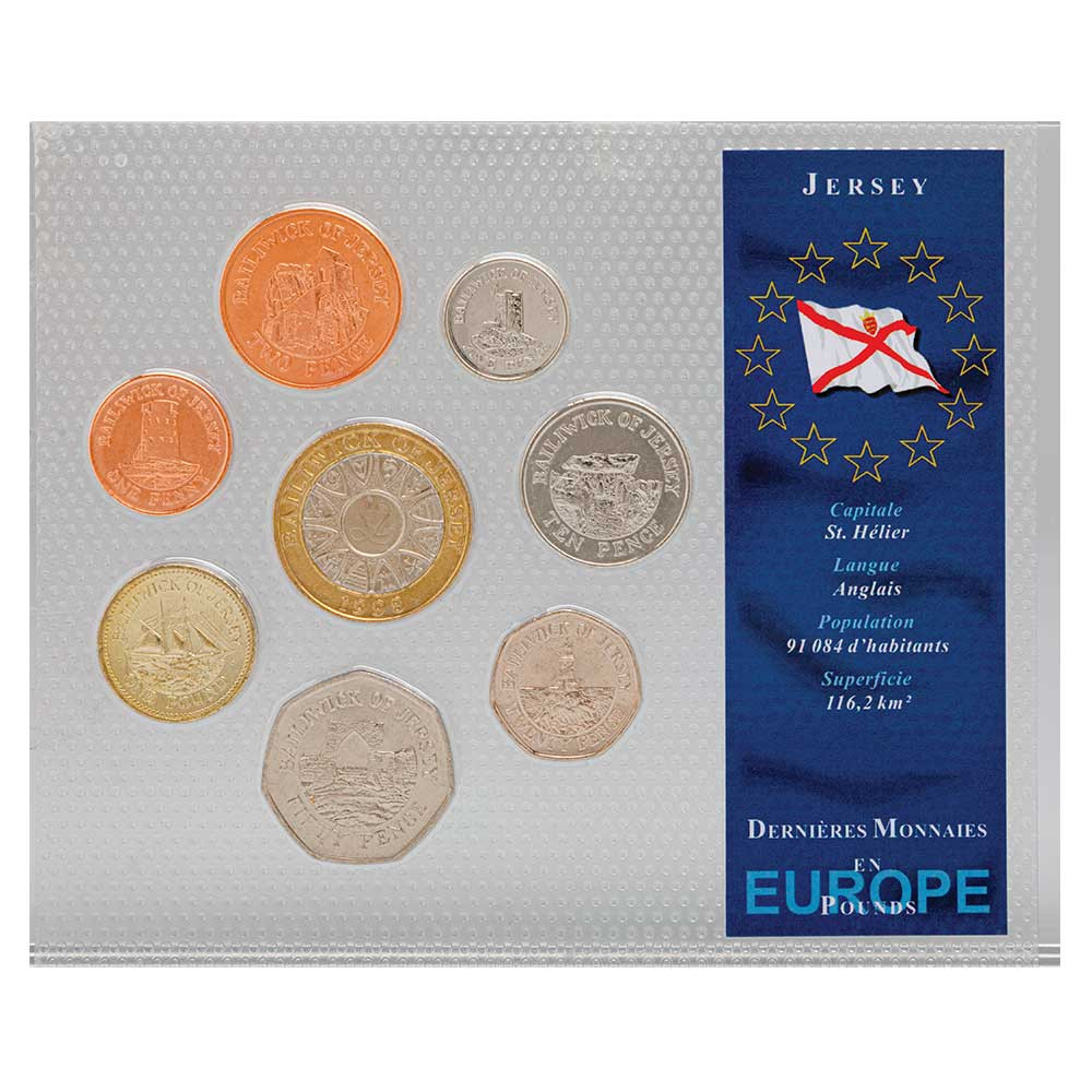 8 pièces de 1 Penny, 2, 5, 10, 20, 50 Pence, 1 et 2£.
