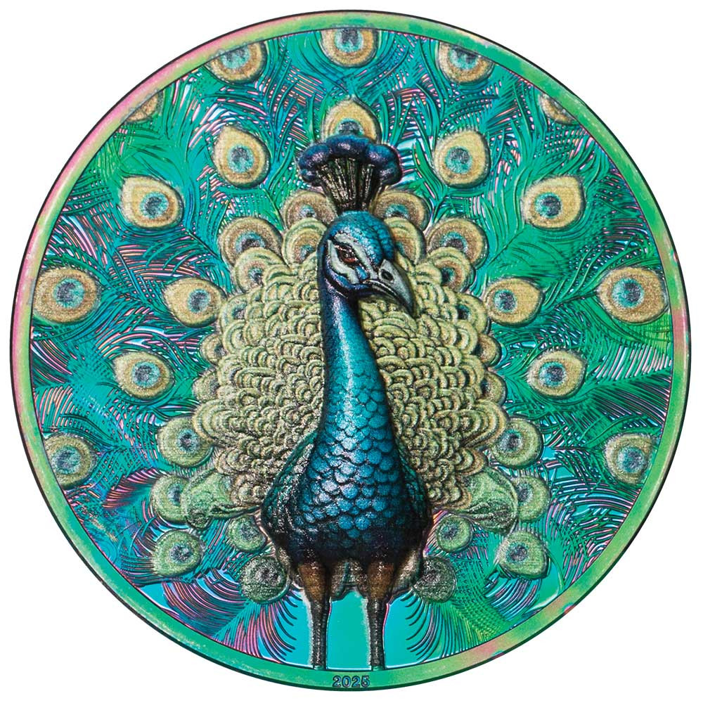 5 Dollars Argent BE 2025 colorisée - Paon