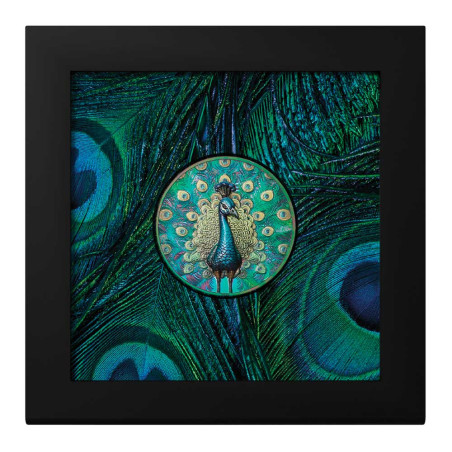 Cette pièce est tout simplement fascinante grâce à la combinaison de l’Ultra Haut-relief et de la technique de revêtement de la couleur qui confère une brillance sans pareil au déploiement du plumage coloré de ce magnifique paon !