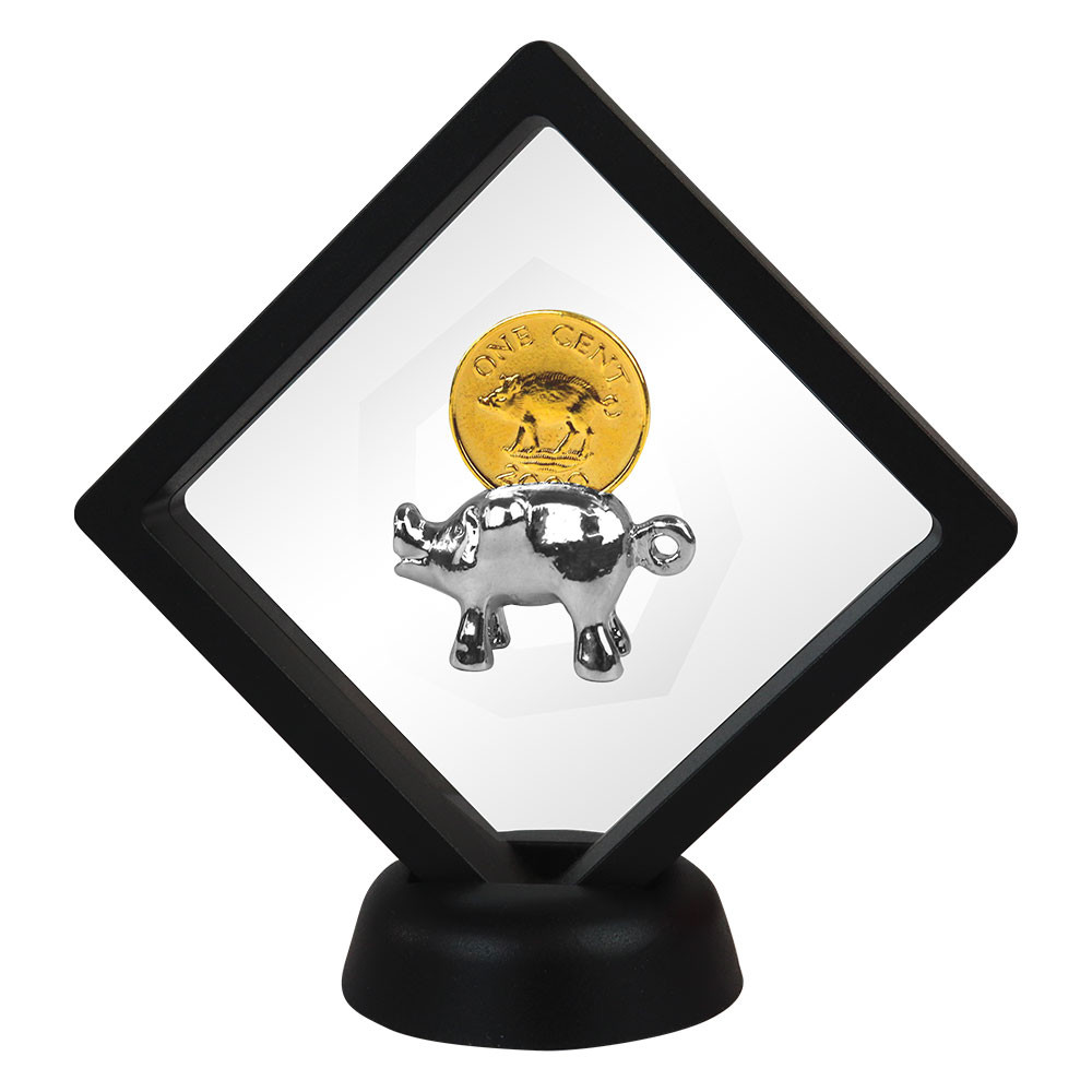 1 Cent Bermudes doré à l’Or fin 24 carats + Cochon en cupronickel argenté (Dim. : 80 x 100 x 3 mm - 31,1 g).