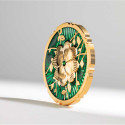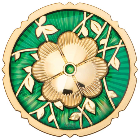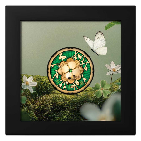 Entièrement dorée à l’Or fin, décorée avec un émail vert profond et ornée d’un cristal vert scintillant, cette pièce n’est pas seulement un symbole de bonheur et de prospérité, mais aussi une œuvre d’art qui combine une technologie moderne de frappe et un design innovant. L’effet 3D ajoute une dimension artistique. La monnaie porte-bonheur par excellence !