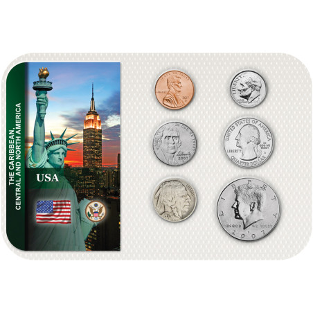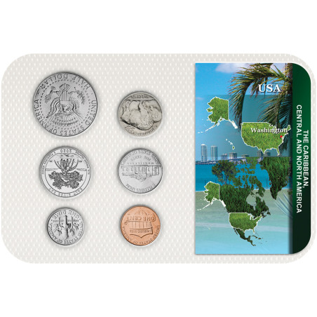 6 pièces de 1, 5, 5 Cents, 1/10, 1/4, 1/2 Dollar.