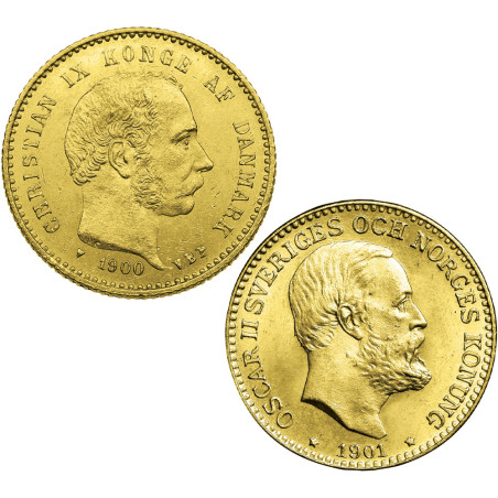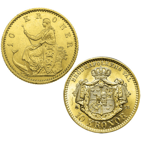 - 10 Couronnes Or Suède 1901 - Oscar II - Or 900‰ - Ø 18 mm - 4,48 g. TB/TTB