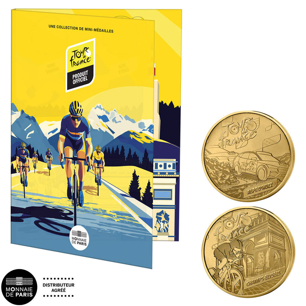 Dim. : 15,5 x 20,5 x 1 cm. Livré avec les pièces de collection Alpe d’Huez et Champs-Élysées.
