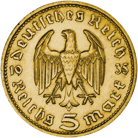 5 Reichsmarks Argent Allemagne 1935-1936 dorée