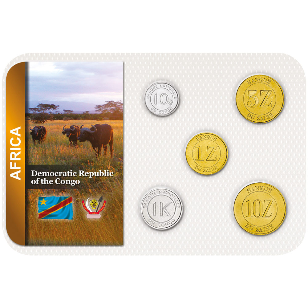 5 pièces de 10 Sengi, 1 Likuta et 1, 5, 10 Zaires.